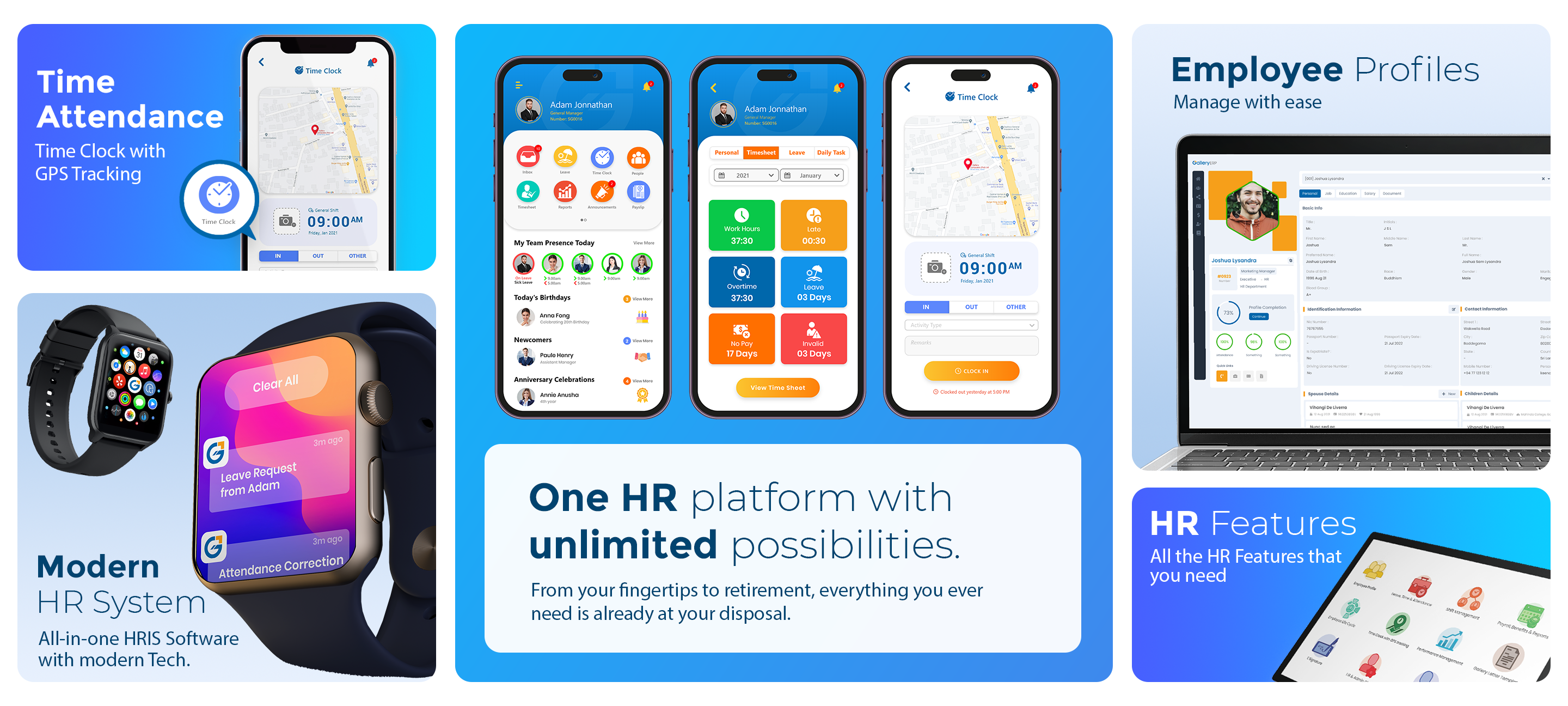 Whether you’re in the office or on the go, manage your HR tasks seamlessly from any device. Our cloud-based platform ensures that your team stays connected, productive, and efficient, no matter where they are. Enjoy the flexibility to oversee HR processes, approve requests, and stay updated with real-time data—all from the palm of your hand.